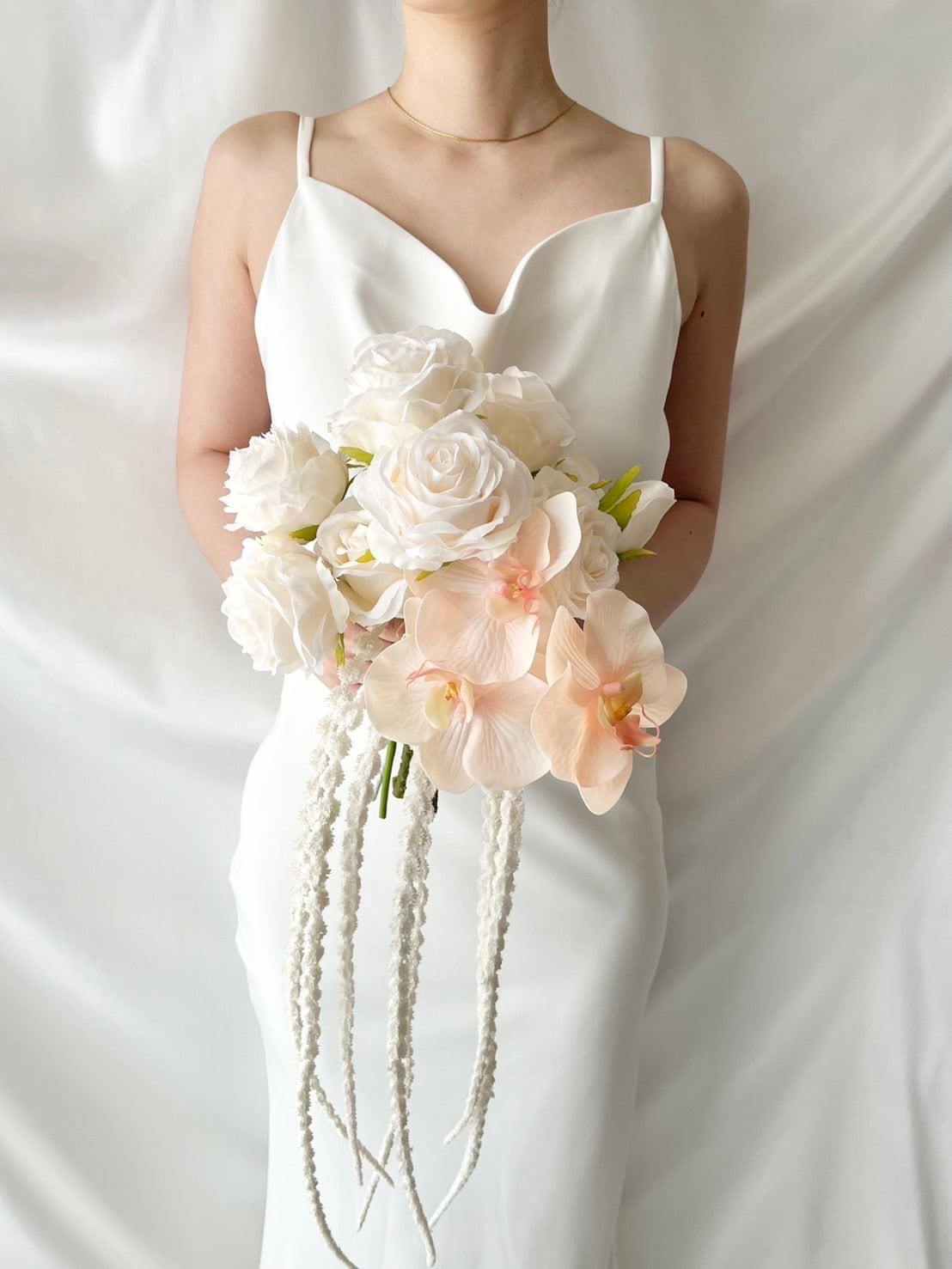 ホワイトローズ、ピンク胡蝶蘭、トレンドのアマランサスを…♡