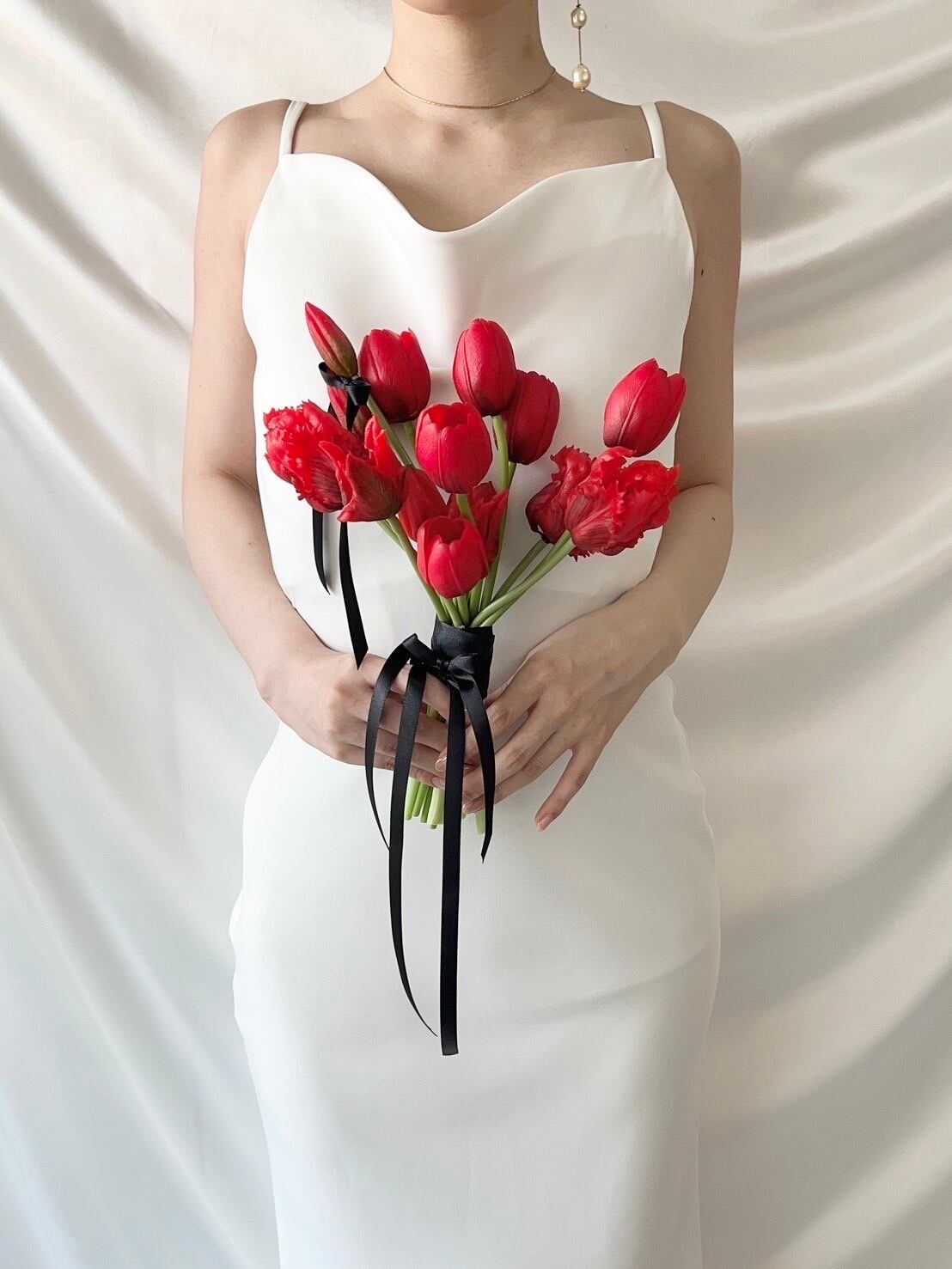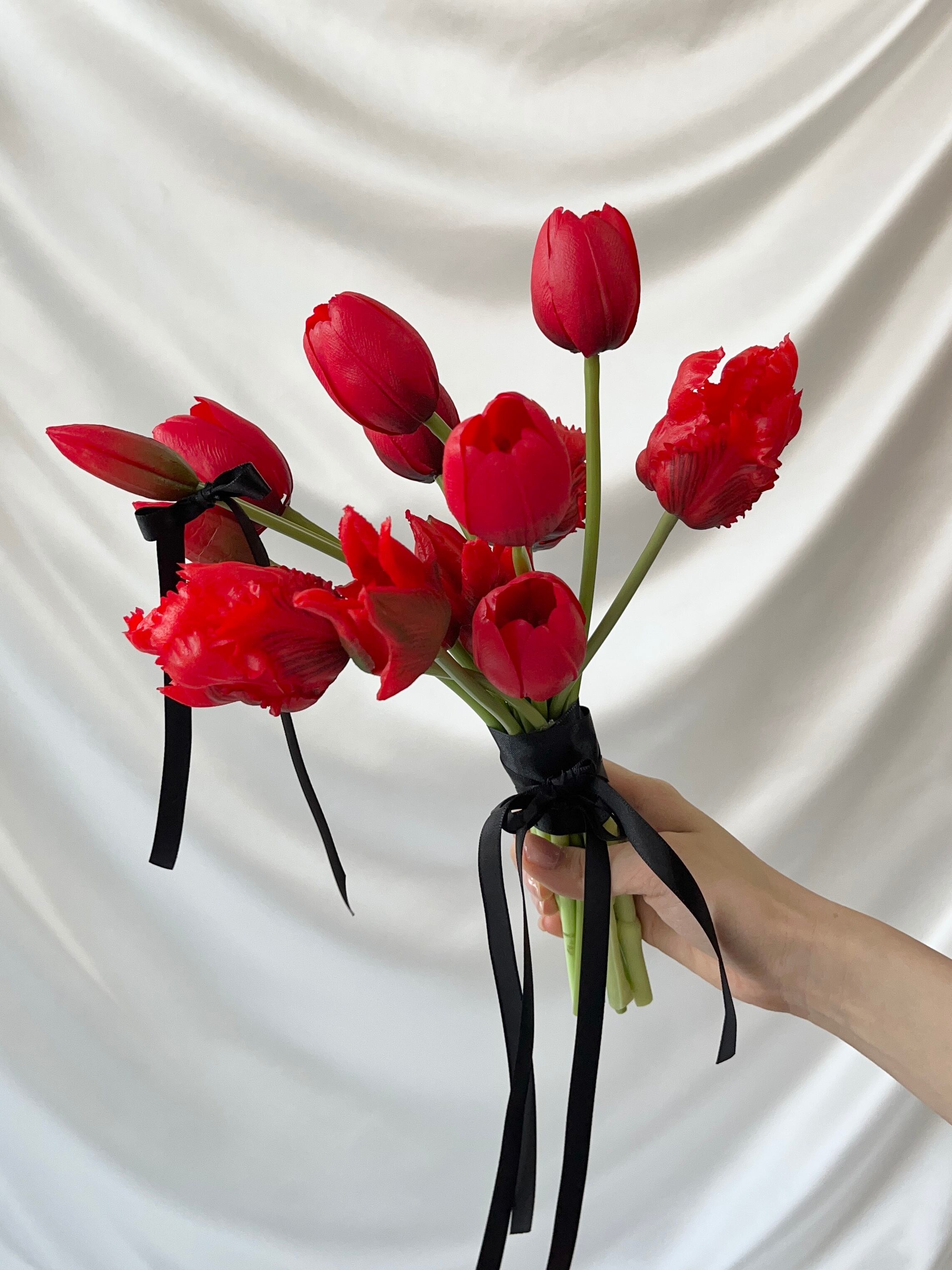 真っ赤なチューリップに、黒のリボンで大人っぽく、可愛く…♡