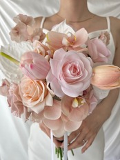 柔らかいピンクと、ホワイトを束ねたラブリーなブーケです♩