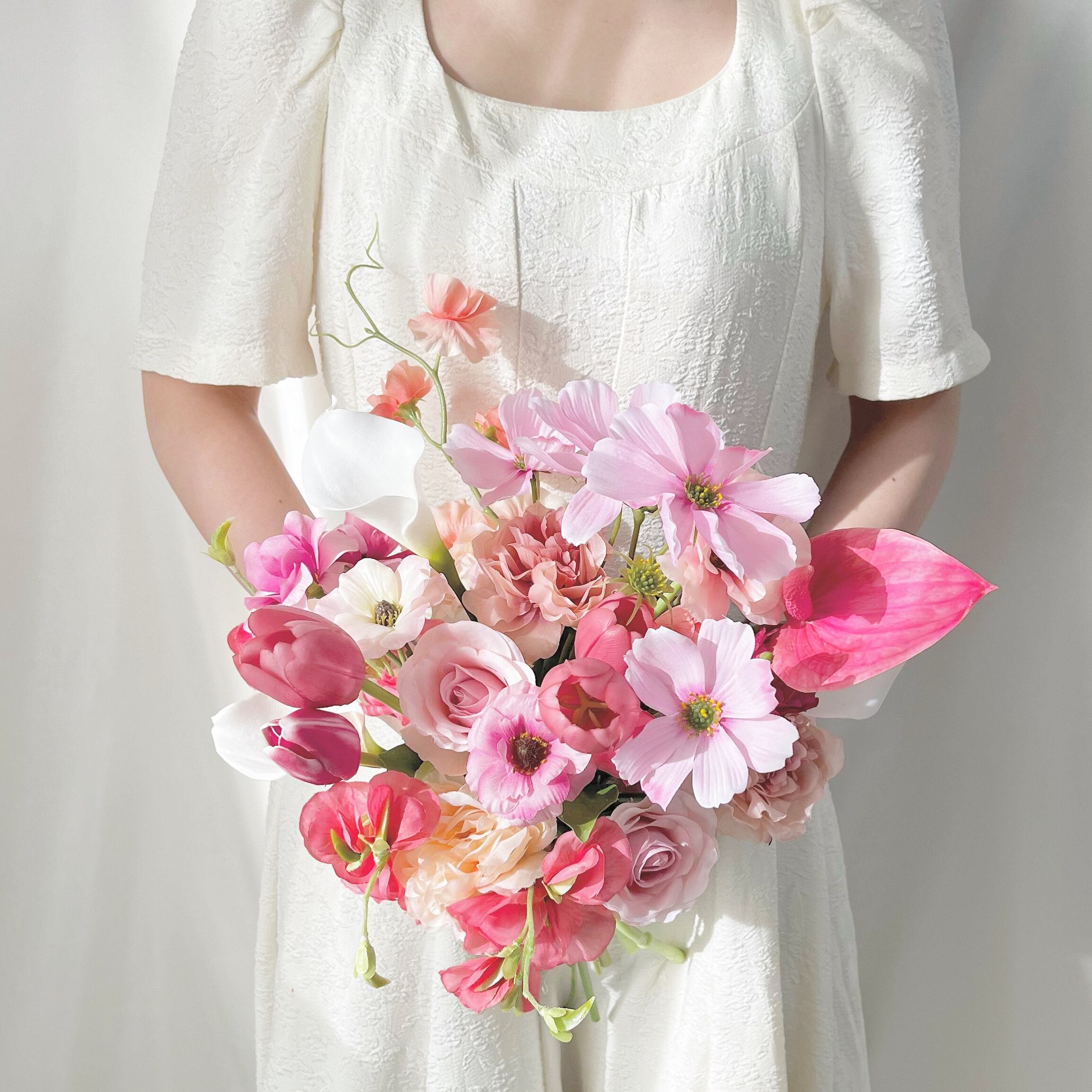 ウェディングブーケ ウエディングブーケ bouquet ブライダルブーケ 花嫁 前撮り 後撮り アーティフィシャルフラワー アーティフィシャルフラワーブーケ花束 フォトウエディング フォトウェディング ウェディングフォト ウエディングフォト 結婚 韓国風ブーケ カラーブーケ チューリップブーケ ピンクホワイトブーケ シンプルブーケ 韓国